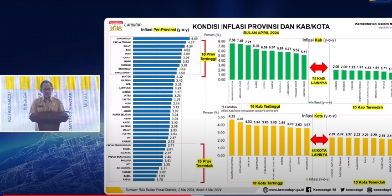 Menteri Tito mengaku tidak puas dengan ketidakmampuan kepala daerah dalam mengatasi hal ini. Dari 38 provinsi di Indonesia, hanya 10 provinsi yang mampu mengendalikan inflasi di bawah 3 persen.