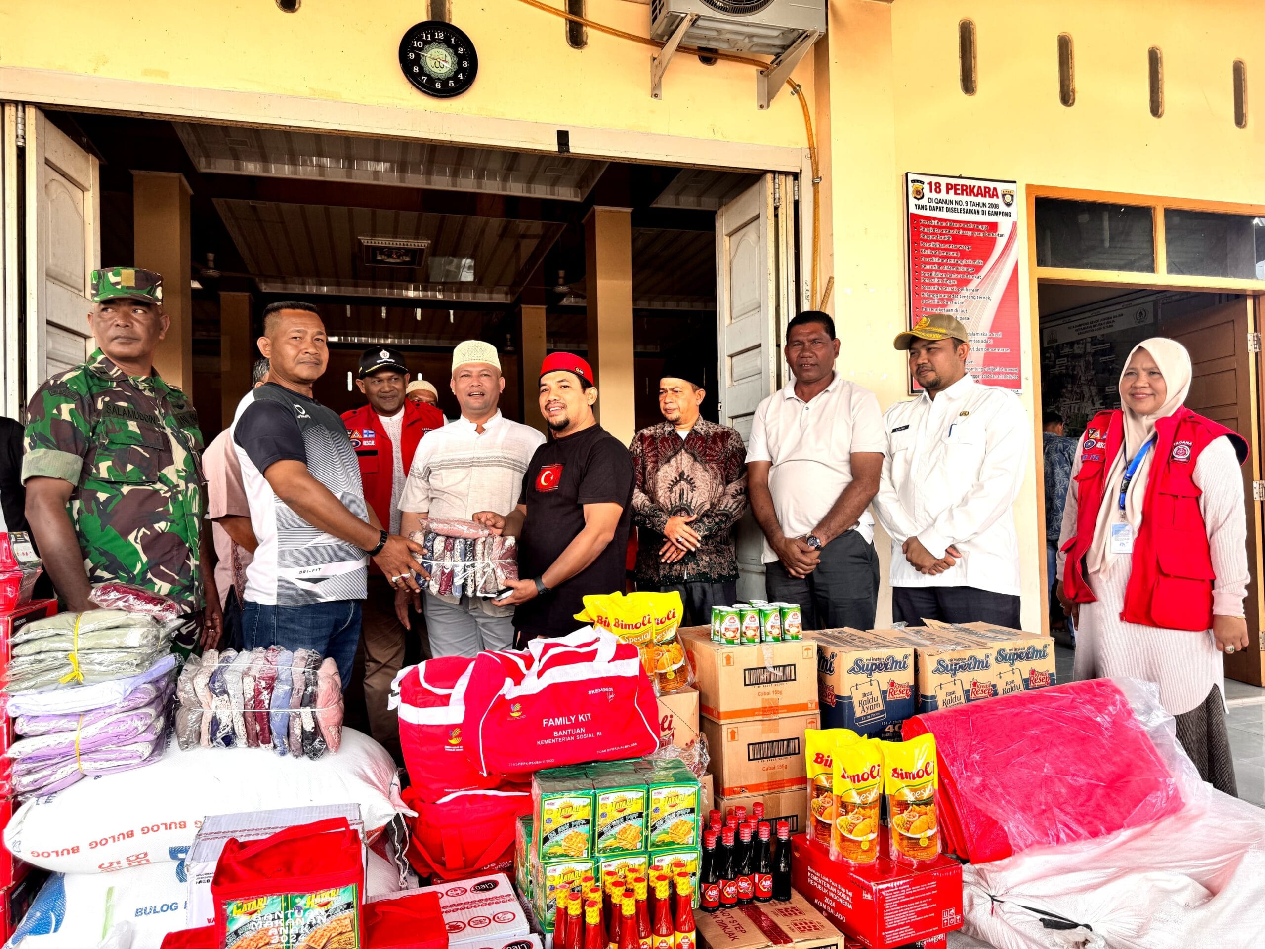 Bantuan tersebut diserahkan atas arahan dari Kepala Dinas Sosial Aceh Dr. Muslem Yacob, S.Ag saat dihubungi oleh Imum Jon selaku Anggota DPRA pasca musibah kebakaran yang terjadi pada Kamis (9/01) sekitar pukul 10.30 WIB tersebut yang menghanguskan 10 unit ruko kayu yang juga berfungsi sebagai tempat tinggal warga, serta satu unit Gedung Serba Guna (Meunasah) setempat. Insiden ini menyebabkan kerugian material yang cukup besar bagi masyarakat setempat.