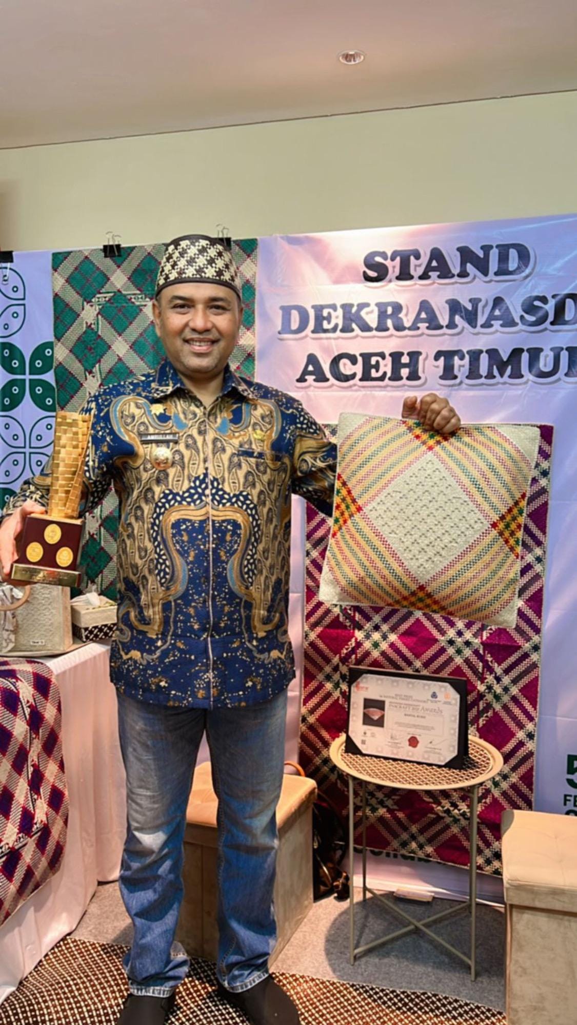 IDI – Produk anyaman dari Aceh Timur berhasil meraih juara pertama dalam kategori Natural Fiber di ajang Jakarta International Handicraft Trade Fair (INACRAFT) Award 2025 yang dilaksanakan dari Tanggal 5-9 Februari 2025 di Djakarta Convention Centre Prestasi ini membuktikan bahwa kerajinan tangan asal Aceh Timur mampu bersaing di tingkat nasional dan internasional.