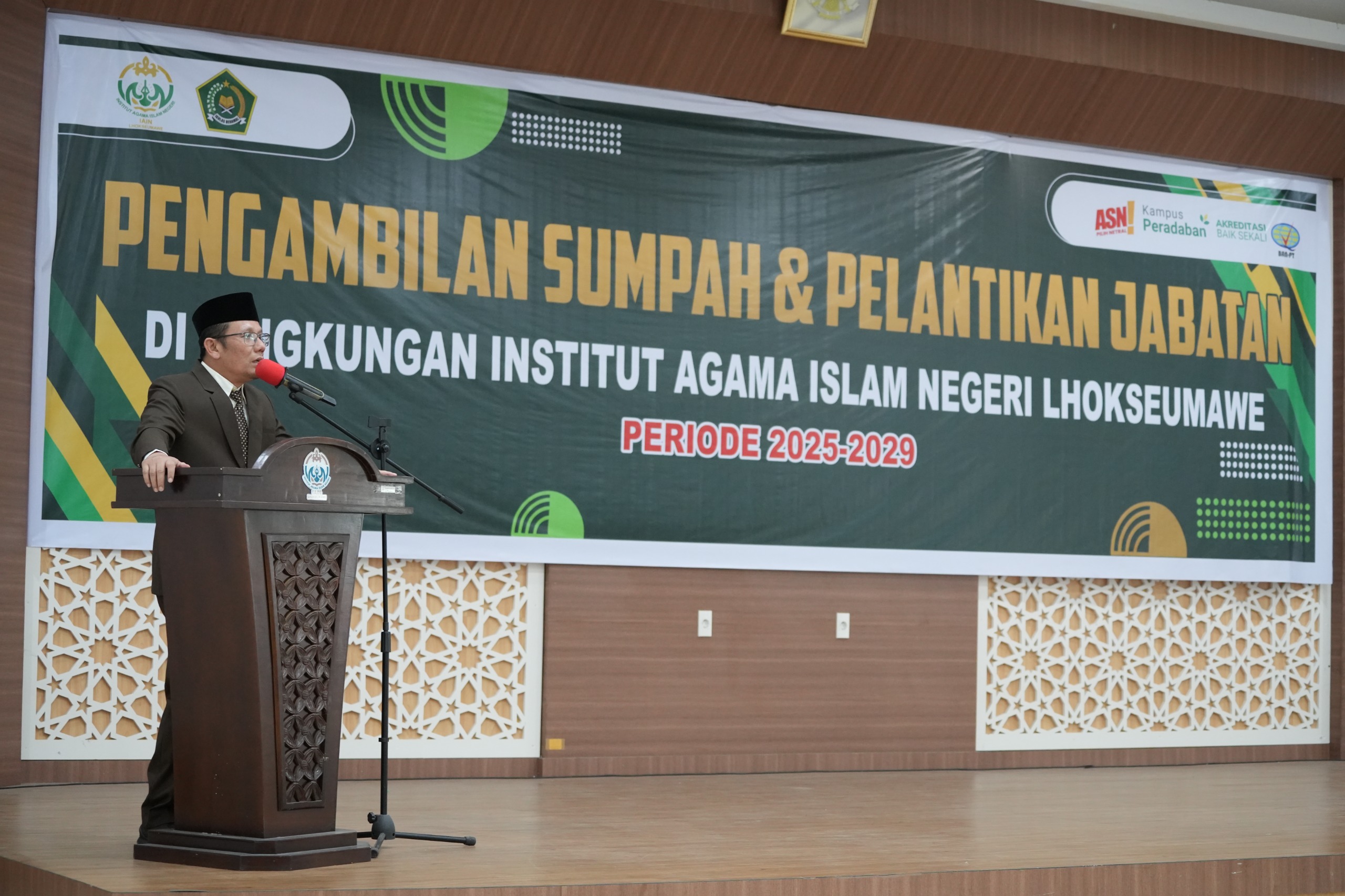 Acara pelantikan berlangsung khidmat dengan pengambilan sumpah jabatan secara Islami, dipimpin langsung oleh Rektor IAIN Lhokseumawe , disertai penandatanganan Berita Sumpah Jabatan dan Fakta Integritas oleh para pejabat yang dilantik.