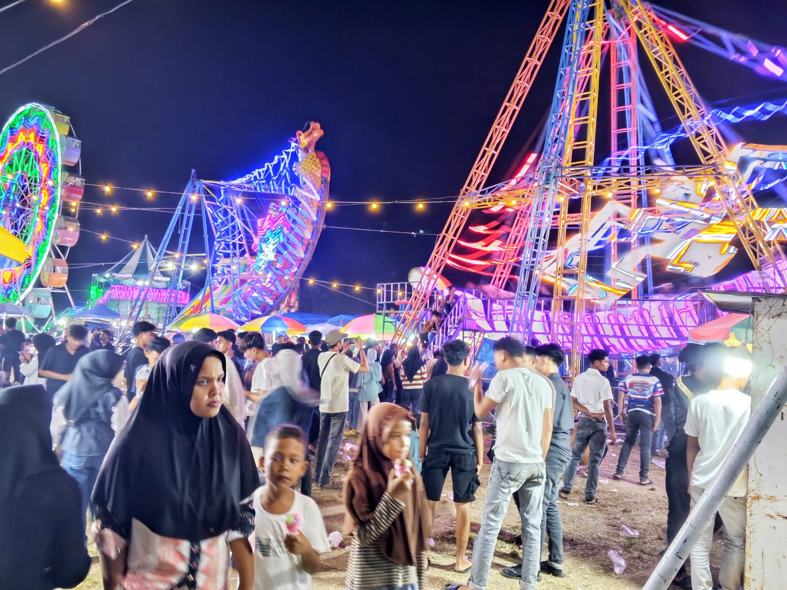 Pantauan di lokasi, lapangan Keude Krueng Geukueh dipadati kendaraan sejak pukul 19.00 WIB. Cahaya lampu dari puluhan stan pedagang—mulai dari kuliner, pakaian, mainan anak, hingga wahana permainan tradisional—menciptakan suasana layaknya festival rakyat yang berlangsung hingga larut malam.